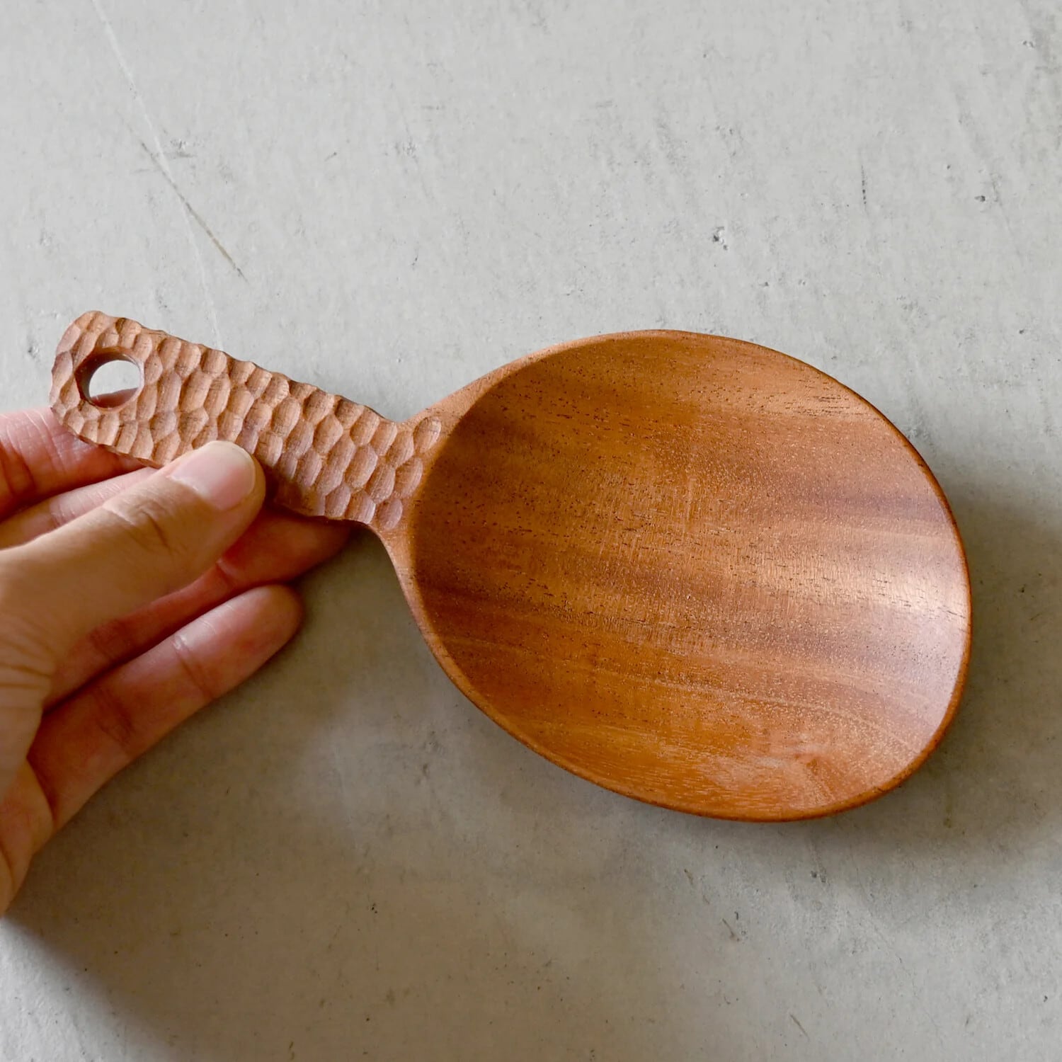 薬効の高さで知られる木を、ひとつひとつ手仕事で削り出した、天然素材・無塗装のナチュラルなおさじです。