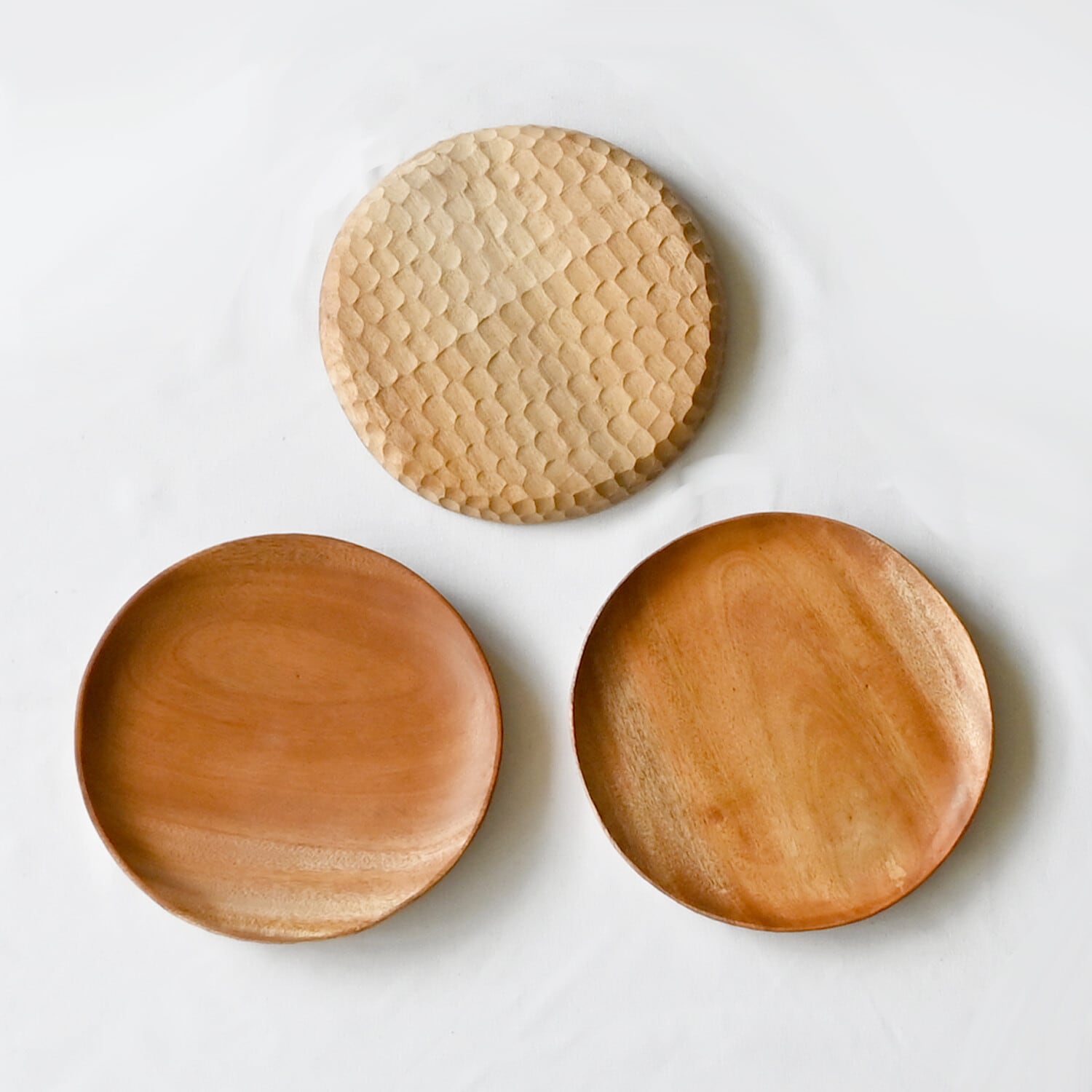 インド・コルカタから車で3時間ほどの山あいに暮らす職人たちが、ひとつひとつ丁寧に削り出した天然素材の食器です。